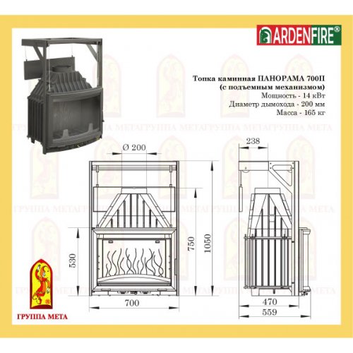Каминная топка Мета Ardenfire Панорама 700П